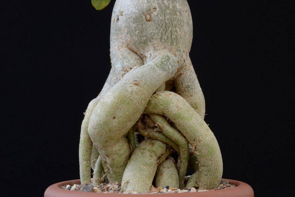 Формирование корневой системы специалисты рекомендуют начинать у взрослых экземпляров, удаляя ненужные боковые корешки, заплетая их, завязывая в узелок, закручивая спиралью, одним словом, проявляя фантазию в зависимости от своих желаний с учетом любви к растению.