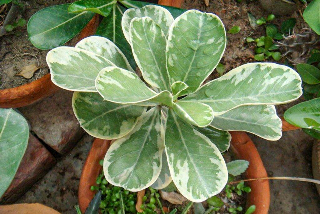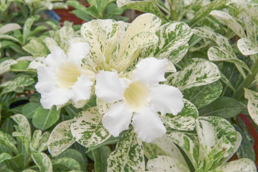 Вариегатный адениум – адениум с окраской листьев, отличной от ровной зеленой.