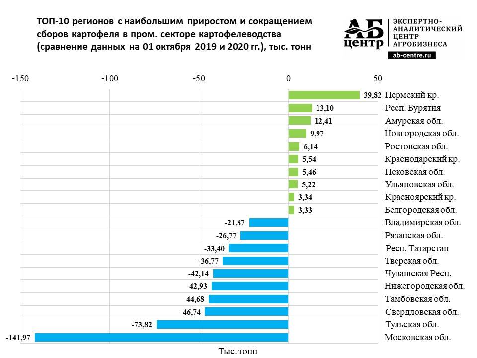 Лидеры по сокращению и приросту производства картофеля