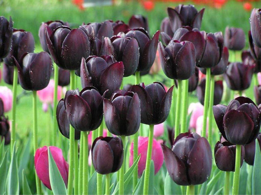 Чёрный цвет бутонов имеет целая группа сортов тюльпанов. Все они меняют оттенок лепестков в зависимости от уровня освещённости.
