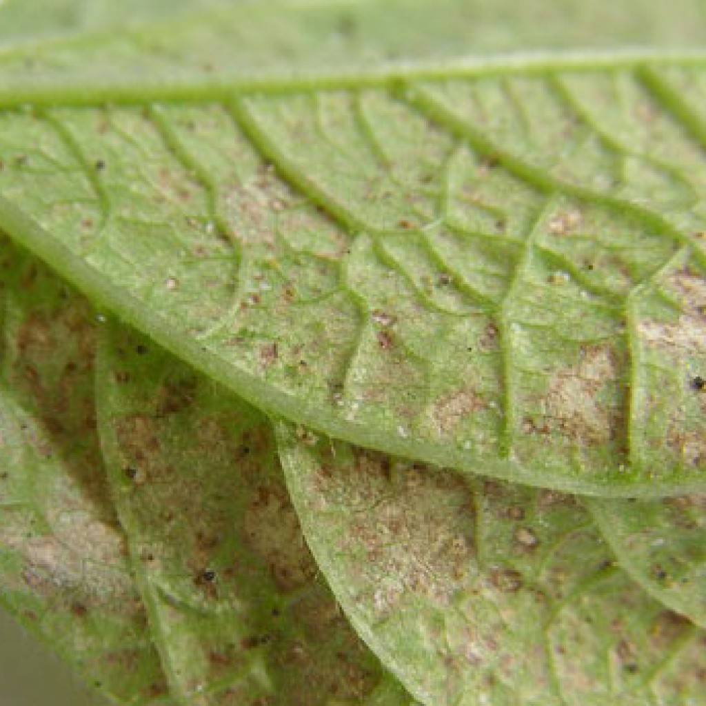 - Трипсы. Трипсы появляются из-за повышенной температуры воздуха и влажности. На них укажут скопления мелких зернистых насекомых на тыльной стороне листа, появление светлых пятен на их верхней стороне. Листья становятся вялыми и коричневыми, могут приобретать сероватый блеск. Чтобы избавиться от трипсов, растения обрабатывают инсектицидами несколько раз в месяц. Для этого берут такие препараты как: фитоверм, актеллик, громдецис или инта-виром.