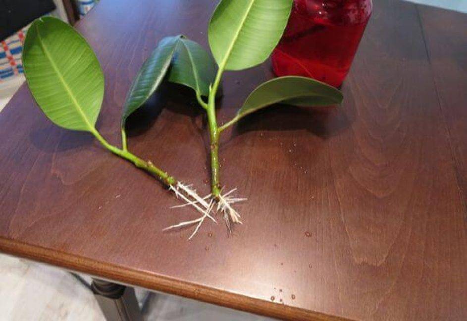 После срезки черенков нужно промыть их в проточной воде, чтобы смыть млечный сок. Обязательным условием является также скручивание нижних листьев в трубочку, скрепление их резинкой. При этом нижняя сторона должна смотреть внутрь.