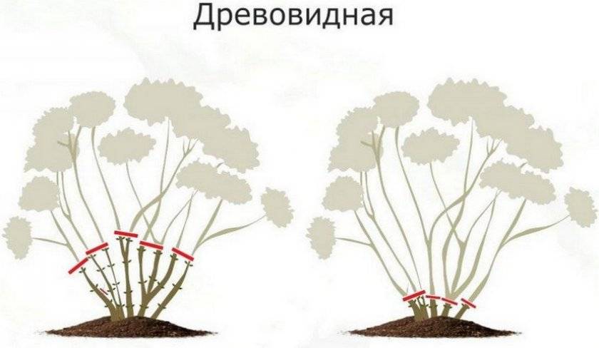 Ранней весной, когда сок ещё не течёт по стволу, проводят профилактическое удаление старых и повреждённых побегов. В это же время обрезают и те ветки, которые направлены внутрь куста. Побеги, которым исполнился год, укорачивают до 5 почек. Уже в этом сезоне на них появятся соцветия