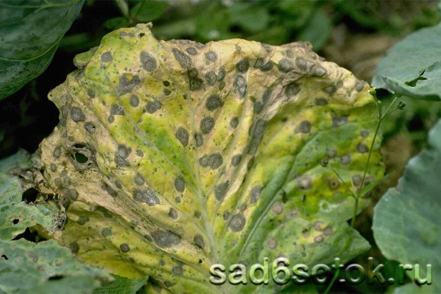 Возбудитель проникает дальше в сосуды. Они закупориваются и темнеют, а листья начинают отмирать. Пораженная капуста выглядит ослабленной, отстает в развитии от здоровых растений.