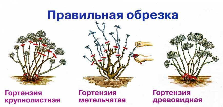 На зиму ветви укорачиваются примерно на треть или около половины всей длины. Для гортензий с крупными соцветиями возможна обрезка только цветов, а укорочение ветвей можно делать уже весной. Если не проводить регулярную обрезку, гортензия хуже цветет и мельчает.
