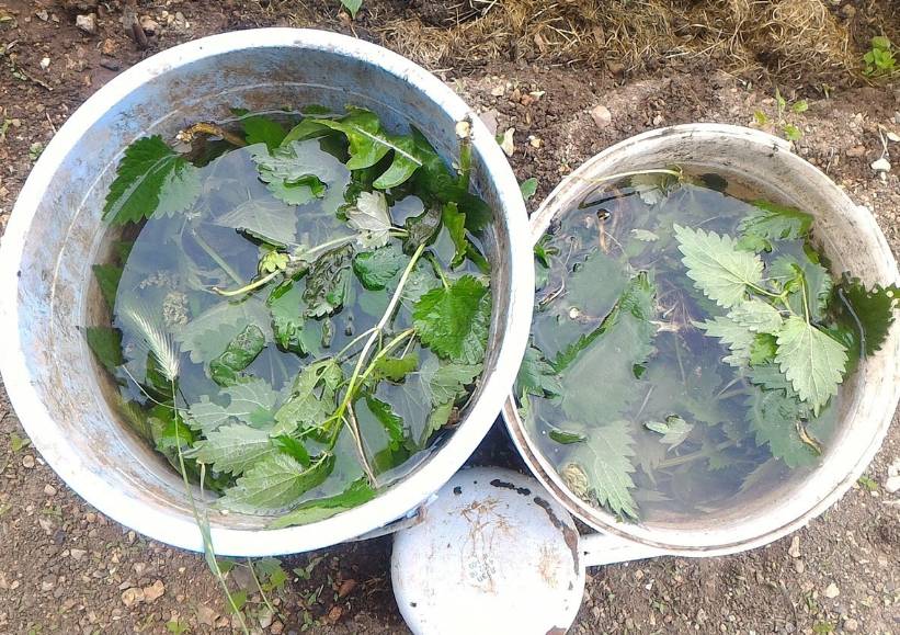 Заливают теплой водой ( если есть возможность можно залить кипятком), накрывают крышкой и дают настояться две недели. Крапивный настой каждый день надо перемешивать. Если емкость находится на солнечной стороне брожение продлится быстрее.