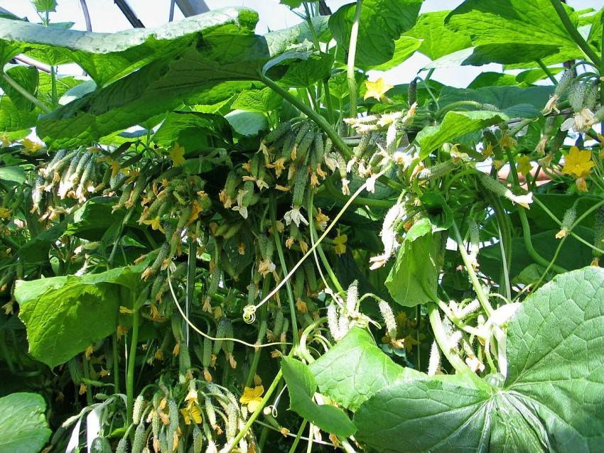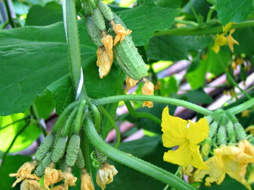 Первое — это частый сбор плодов. Также следует каждые 14 дней поливать растения смесью из молока и воды, что положительно влияет на рост огурцов и качество урожая.
