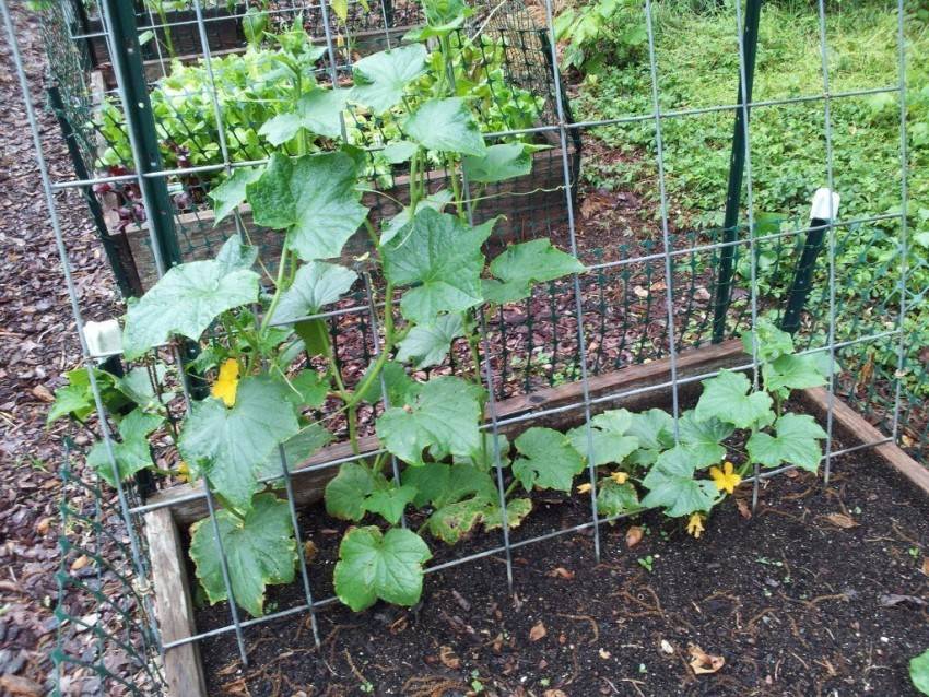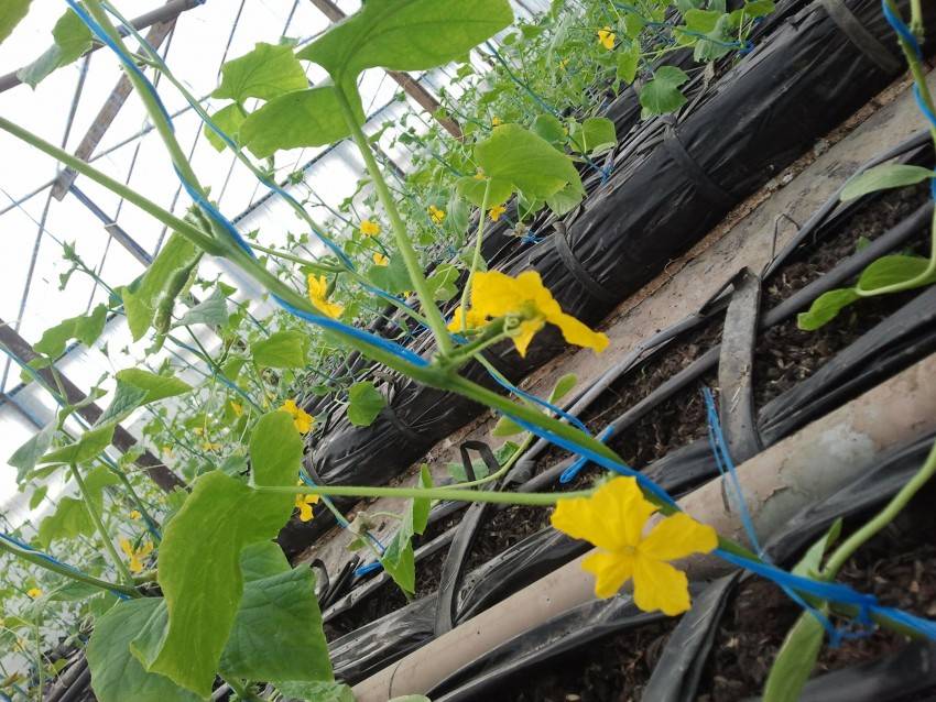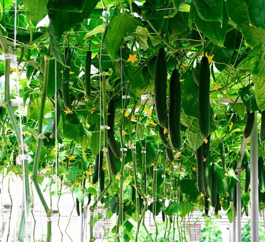 - Для лучшей освещенности выращивайте огурцы вертикальным способом, размещая на шпалере, сетке или подвязывая шпагатом.