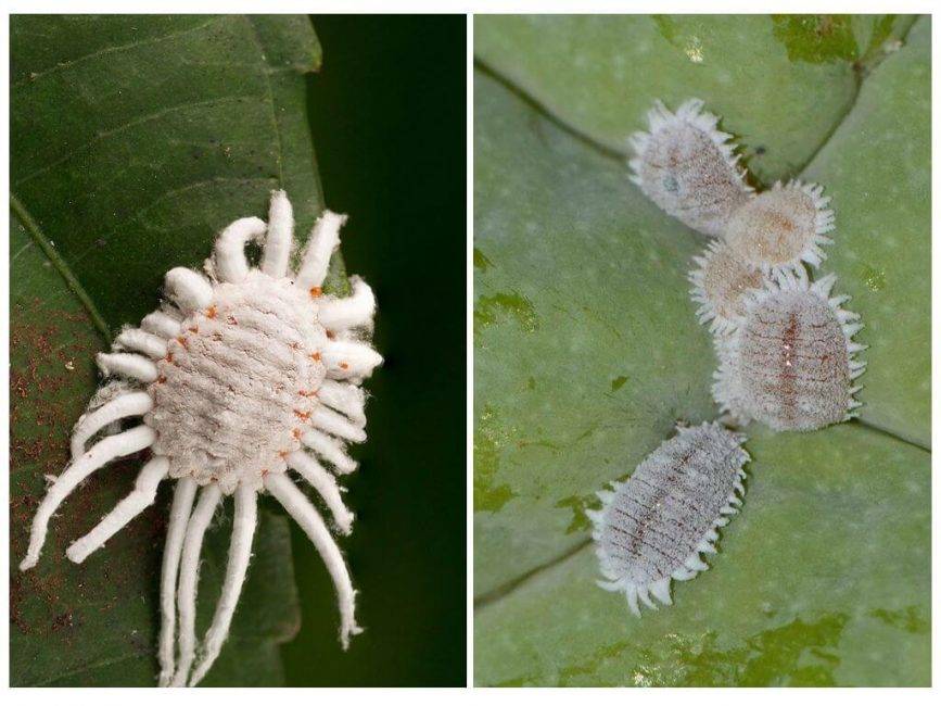 И эти создания живут и здравствуют! Чтобы избавиться от щитовок, придется сначала обработать фаленопсис пеной хозяйственного мыла, затем смыть, просушить растение и обрызгать его водой, в котором растворены несколько капелек масла для швейных машинок.