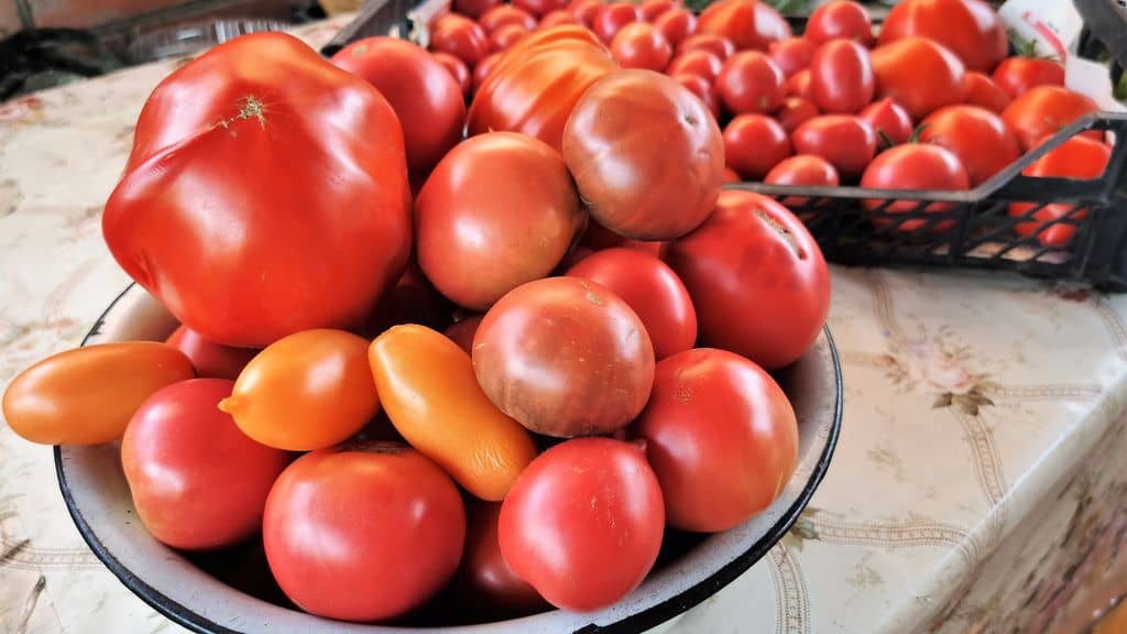 Многие огородники применяют более трудоемкий процесс. Его можно применить, когда помидоры еще на грядках. В полиэтиленовые пакеты положить банановые шкурки. Затем кисть с томатами следует поместить в пакет, завязать. Через 2-3 дня плоды начнут буреть, а потом краснеть. Бананы выделяют этилен, который начинает стимулировать созревание томатов.