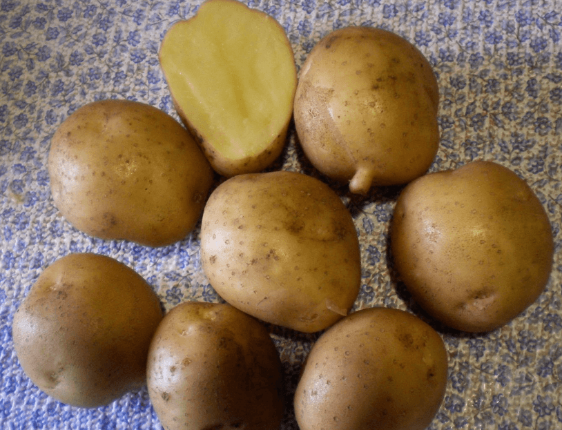 Также является сортом столового назначения, который отличается отменными вкусовыми качествами и хорошим товарным видом. Дает наилучший урожай при оптимальных показателях влаги. Созревшие клубни имеют овальную форму, крупные размеры, красную кожицу и желтую мякоть. Уровень сухого вещества в них – 19,5%.