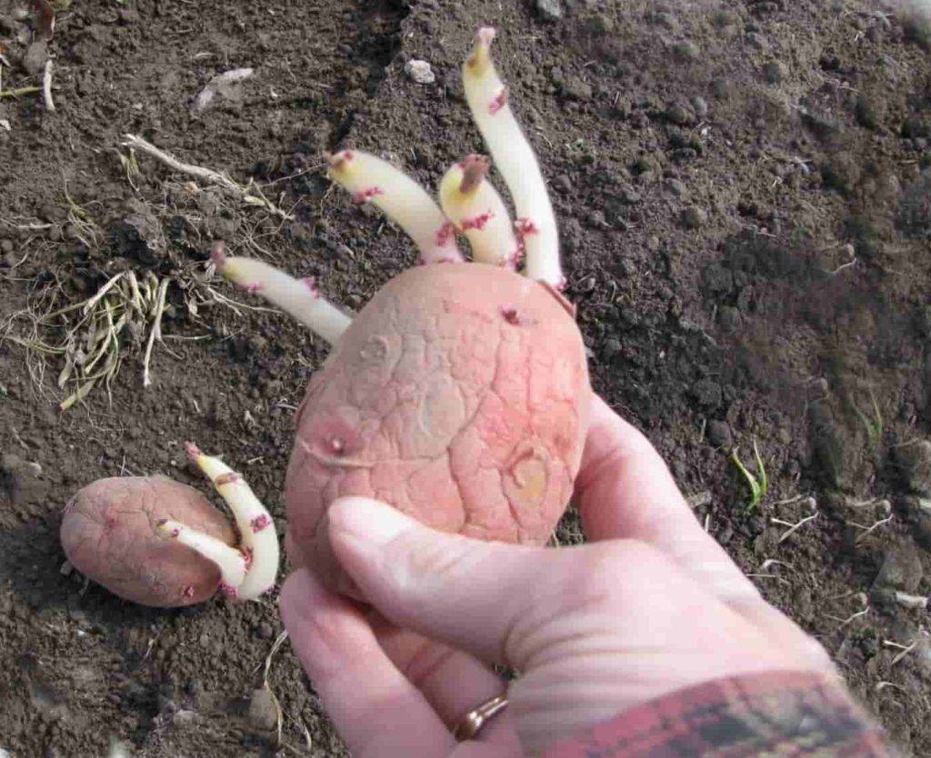 • Среднеранний картофель. Тоже сажают в апреле. Выкапывают урожай после 60-65 дней. Но в посадке такого сорта есть один небольшой нюанс — нужен пророщенный семенной картофель.