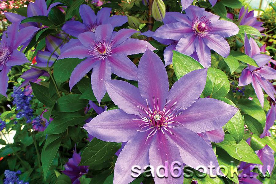 Редкий, очень ценный русский сорт. Цветки светло-лилово-синие со светлой полоской посередине чашелистиков и жёлтыми тычинками, красивой формы. Цветение обильное, почти непрерывное: май-июнь (прошлогодние побеги) и повторно июль-сентябрь (побеги текущего года). Диаметр цветка 15-20 см, высота 2-2,5 м.