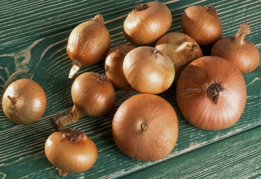 - Бессоновский. Неприхотливый мелкоплодный сорт. Средний вес луковиц — от 45 до 55 г. Форма округлая, мякоть сочная и острая. Хорошо хранится до 9-10 месяцев.