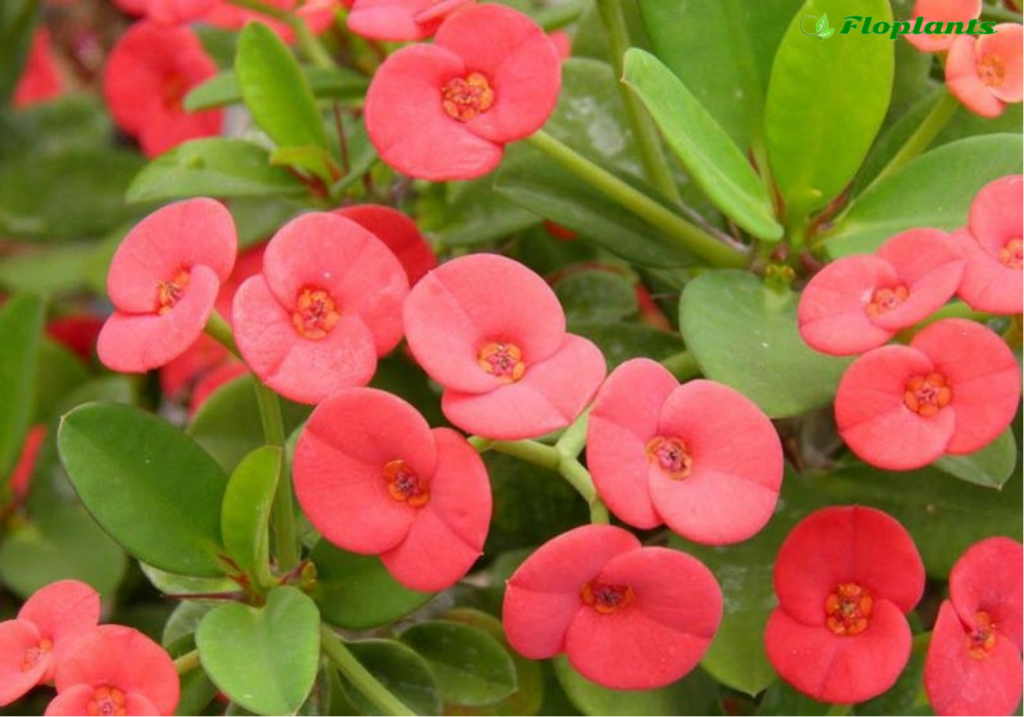 Такой не очень большой колючий кустарник еще именуют «терновым венцом». На его серых мощных побегах располагаются продолговатые листочки. Молоденький кустарник очень красив, так как на нем находится множество меленьких цветочков, имеющих прицветники насыщенного-красного либо бледно-желтого цвета, которые контрастируют с темной зеленой листвой. Старое растение становится схожим с колючим сухим кустарником. Превосходно себя чувствует возле окна, расположенного в южной части помещения.