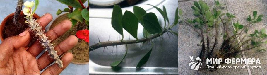 Размножать молочай Миля можно несколькими способами: черенками, семенами и укоренением отводков. Чаще всего практикуется размножение черенками, так как этот метод действенный и простой в реализации (рисунок 6).