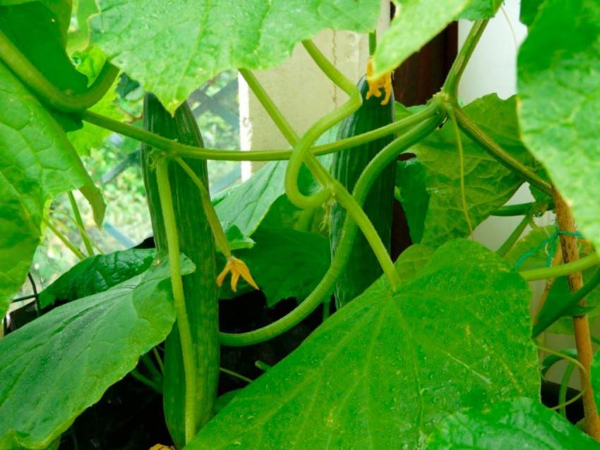 При выращивании на балконе усы также обязательно срезать. Для огурцов на подоконнике большого количества усов вообще не требуется. Достаточно будет, если кустам хватить прикрепиться на опоре. Для этого потребуется всего пару отростков.