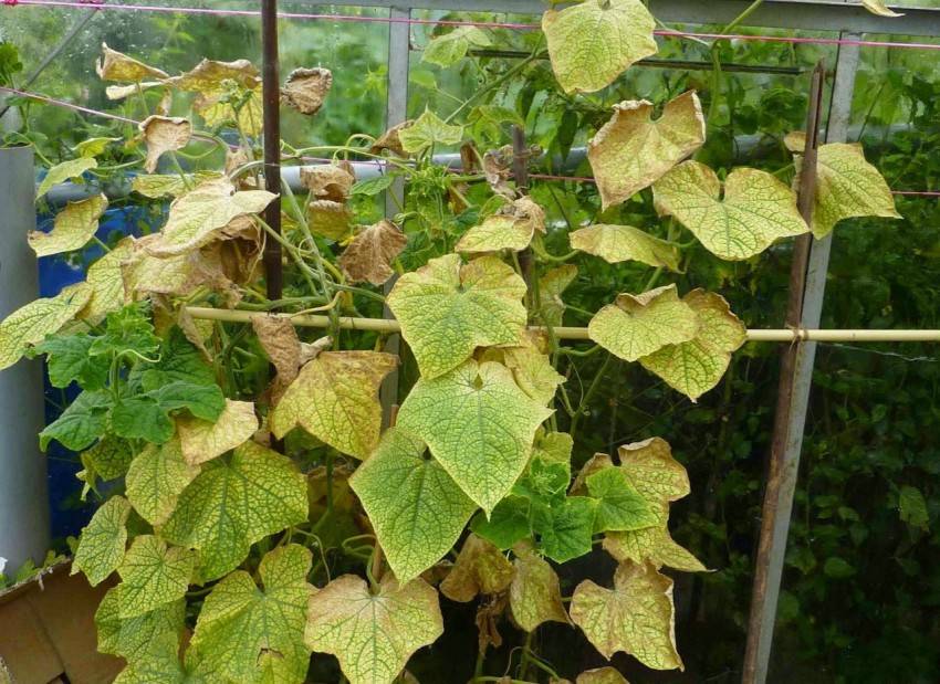 Важное значение приобретает борьба с обнаруженными вредителями. Листья регулярно осматривают, чтобы не пропустить первые признаки огуречных болезней