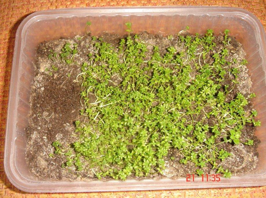 Подготовьте неглубокий широкий контейнер и заполните его грунтом, состоящим из песка и торфа. Семена нужно высеивать на поверхность, не заглубляя в землю и не присыпая сверху почвой. По этой причине грунт следует увлажнить до посева. Также, чтобы равномерно распределить все семена по контейнеру, их можно смешать с сухим песком. Накройте контейнер плёнкой.