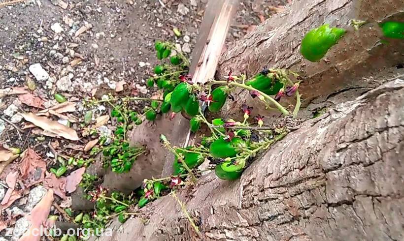 Еще один вариант размножения билимби — с помощью так называемых воздушных черенков. Для этого необходимо одну из нижних ветвей пригнуть к земле и зафиксировать ее таким образом,чтобы побег касался грунта. После того как воздушный черенок пустит корешки, его можно смело отделять от материнского растения.