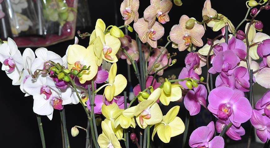 Фаленопсис — одна из самых красивых, популярных и простых в выращивании орхидей. Цветки, похожие на бабочек, собранны в многоцветковые метельчатые соцветия.