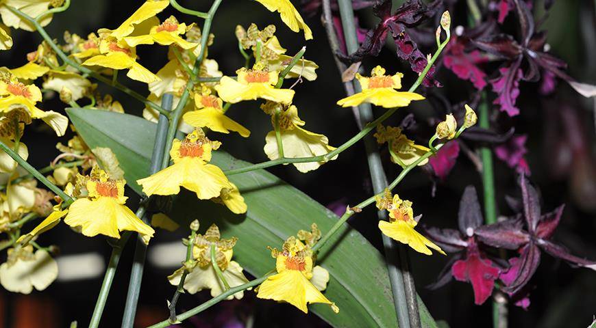 Растения с некрупными, обычно желтыми цветками, собранными в метельчатые соцветия. Онцидиум предпочитает яркое рассеянное освещение и температуру на уровне +20…+22 °C.