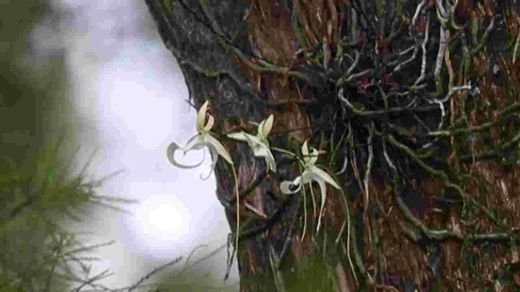Его корни сливаются со стволом дерева, поэтому незаметны, в отличие от белоснежных цветков. Орхидеям-призракам грозит полное исчезновение, связанное с изменением климатических условий, а также браконьерством.