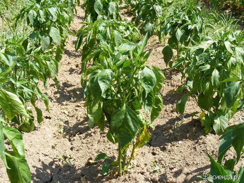 Обязательными являются рыхления, также корни перца можно слегка окучить. Поливают два раза в неделю, расходуя до 10 литров на один м2. График поливов устанавливают, ориентируясь на погоду.