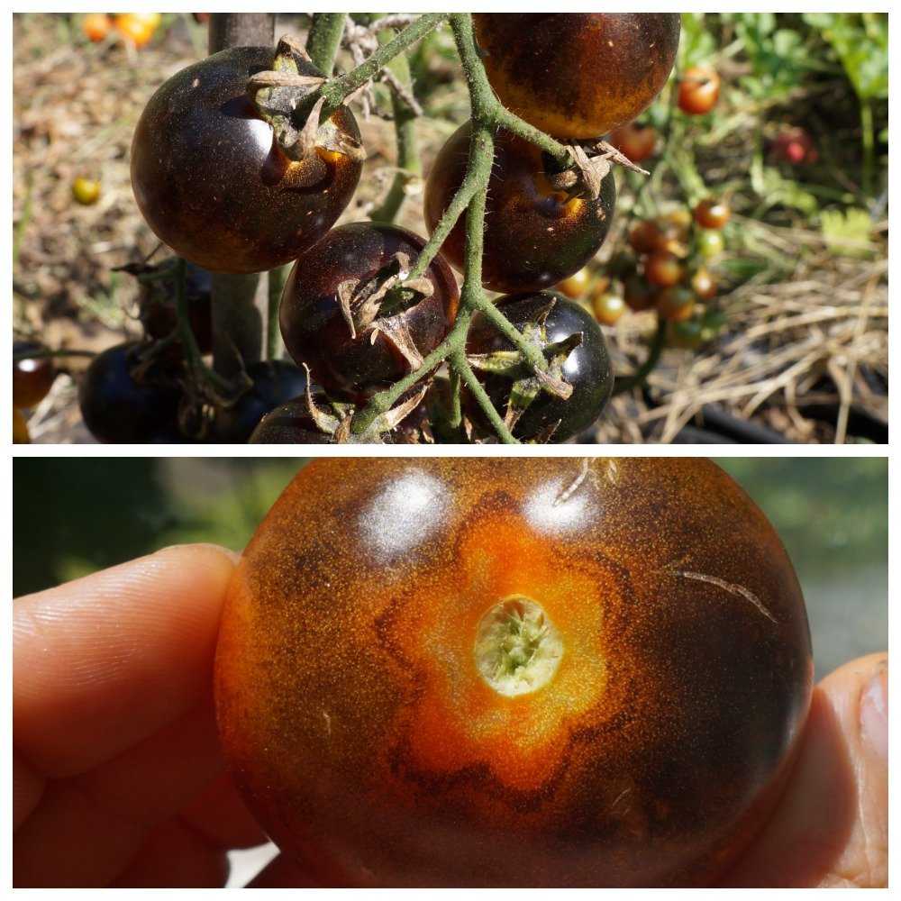 Поскольку насыщенный фиолетовый цвет имеют даже недозрелые плодики, куст этого сорта выглядит невероятно нарядным все лето. Но вместе с тем из-за подобных особенностей не всегда бывает легко отличить спелые ягодки от недоспелых. Готовы к сбору урожая только те помидорки, нижняя часть которых имеет слегка оранжеватый цвет, а не желтый.