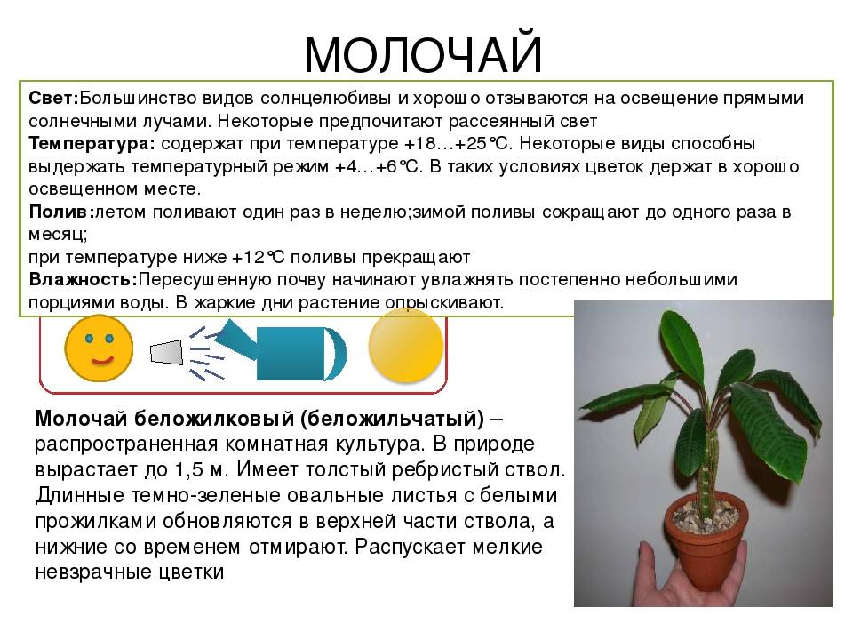 После укоренения молочай требует такого же ухода, который проводился и до пересадки.