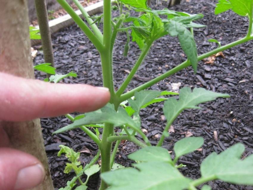 - Там, где пасынки сближаются, удаляют листья. Это позволяет улучшить проветривание помидорных плетей.