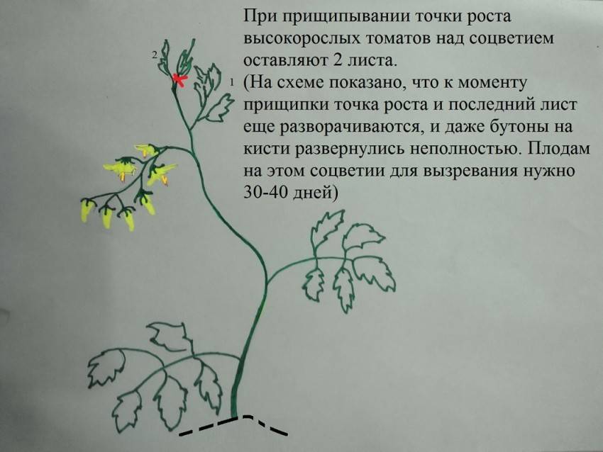 По аналогии со вторым способом нужно оставить два пасынка, которые будут иметь по 2 кисти с плодами. Главному стеблю достанется нагрузка в 3 плодовые кисти.