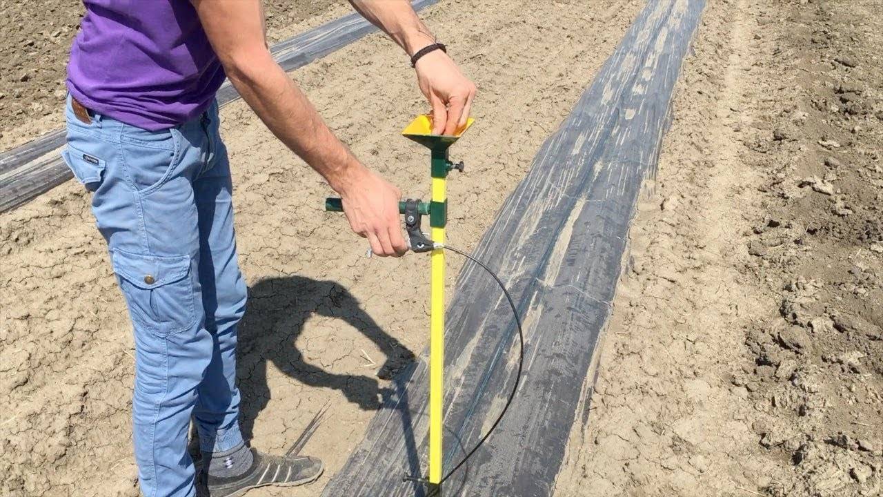 Пистолет для посадки позволяет сажать чеснок сразу под пленку