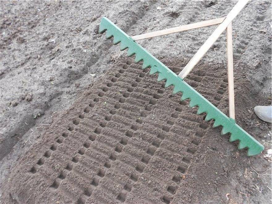 Подобное изделие позволит уменьшить длительность высадки и сделает его более лёгким. Основой инструмента является доска или планка. На одной части располагают рейки с треугольным сечением. На верхней части закрепляют рукоятку для удобного использования прибора.