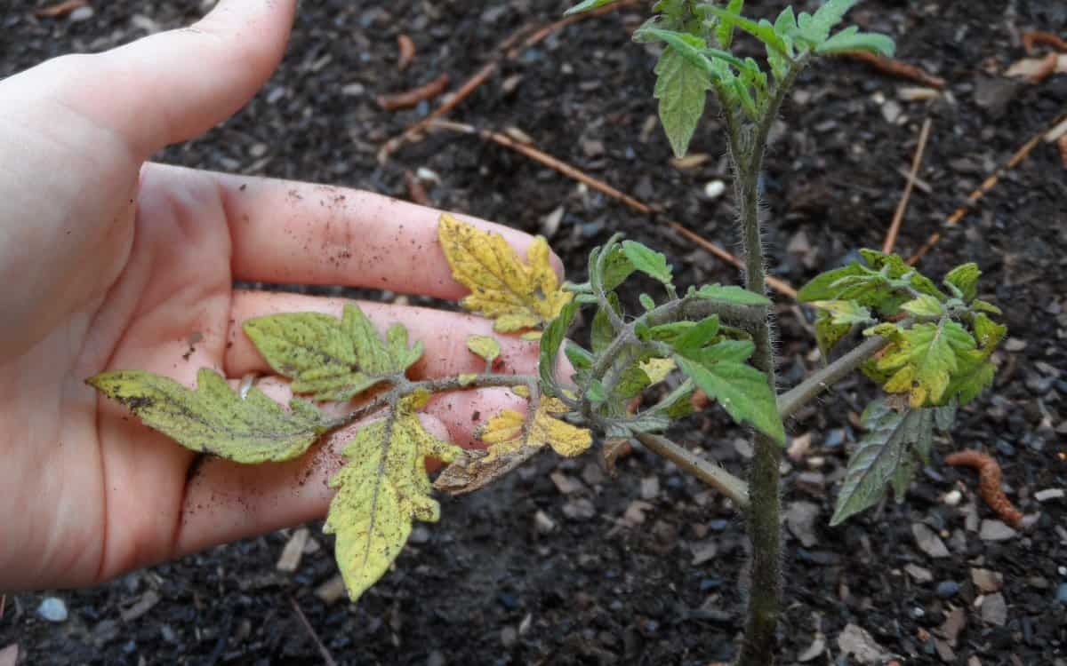Фитофтороз зачастую вызывает пагубные изменения листов, так как болезнь истощает растение, приводя к пожелтению листов. Чтобы ограничить очаг возможного заболевания, уберите высыхающие томаты из основной грядки, пока им не станет лучше.