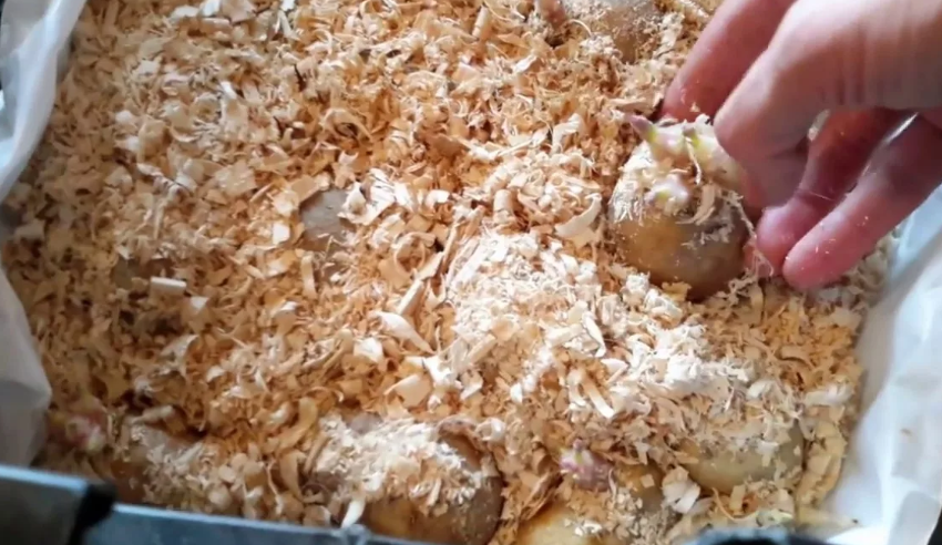 Проводят предварительно за 40 дней проращивание семенного картофеля. Для этого клубни в 2 или 3 слоя раскладывают в светлом помещении при температуре в 12–15 градусов тепла. Для влажной яровизации сложенные в ящики плоды пересыпают влажной землей. И держат 10–15 дней при температуре в 14–18 градусов. Готовый посадочный материал должен быть слегка позеленевшим с мощными ростками длиной в 1 сантиметр.