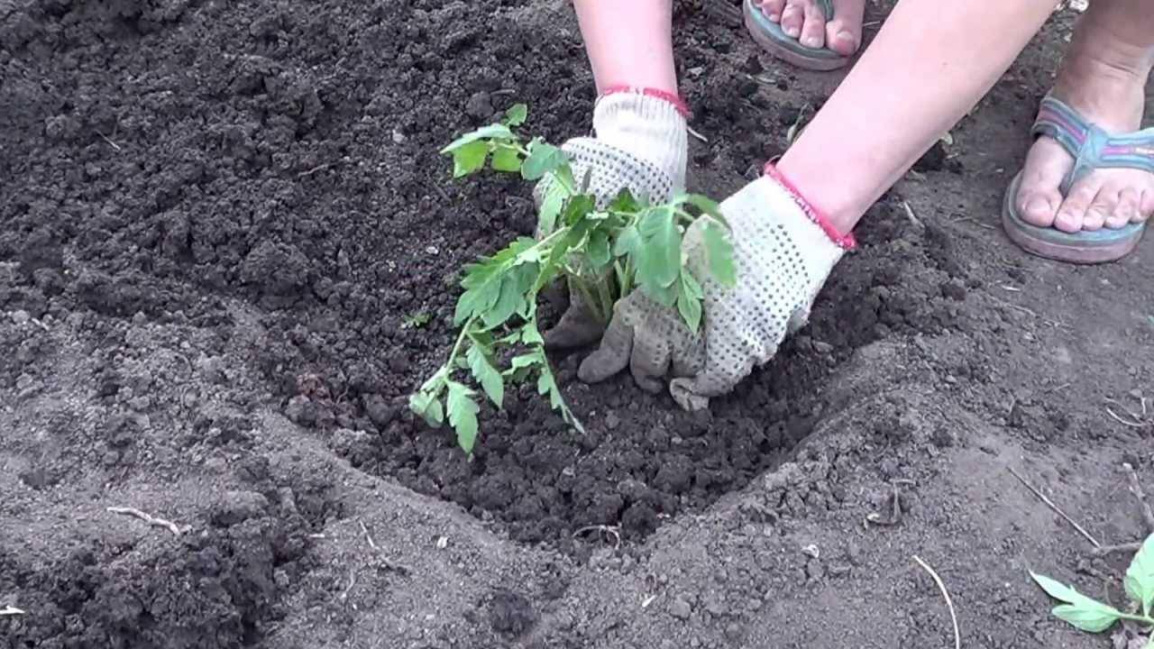 Перед посадкой лунки обязательно увлажняются. Корни необходимо располагать в южную сторону. После высадки томаты засыпаются грунтом и притрамбовываются. Нижние листья рекомендуют удалять.
