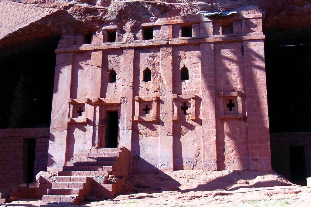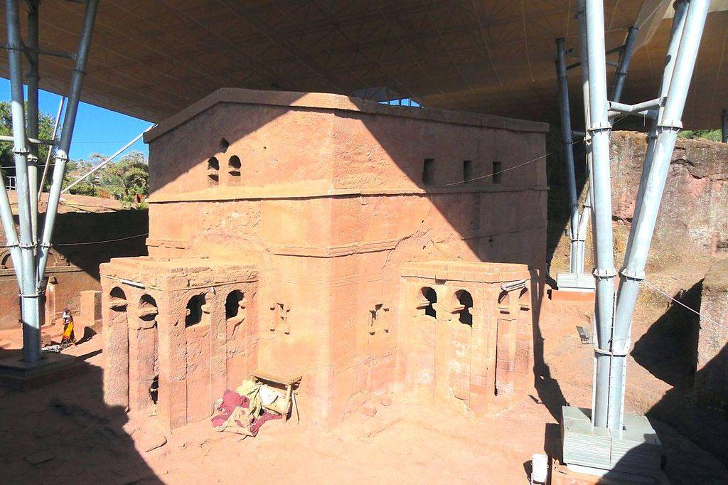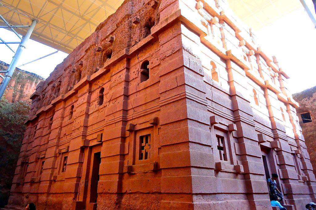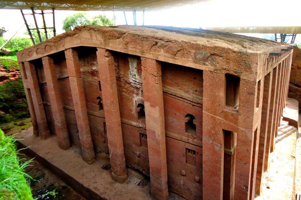 Чтобы рассмотреть все 11 храмов, нужно вскарабкаться по склону горы наверх или подняться на вершину на муле. Кирпично-красный туф, из которого вырезаны церкви, гармонирует с зеленью окружающих холмов и голубым небом. Храмы не построены, а как бы «выкопаны» из толщи песчаника. Вначале мастера вырубали в скалах огромные четырёхугольные отверстия и прямоугольные монолитные блоки, служащие «заготовками» для будущих церквей. Потом из цельной скалы вырезали окна, колонны и скульптуры. Церкви находятся на разных уровнях и связаны между собой подземными переходами.